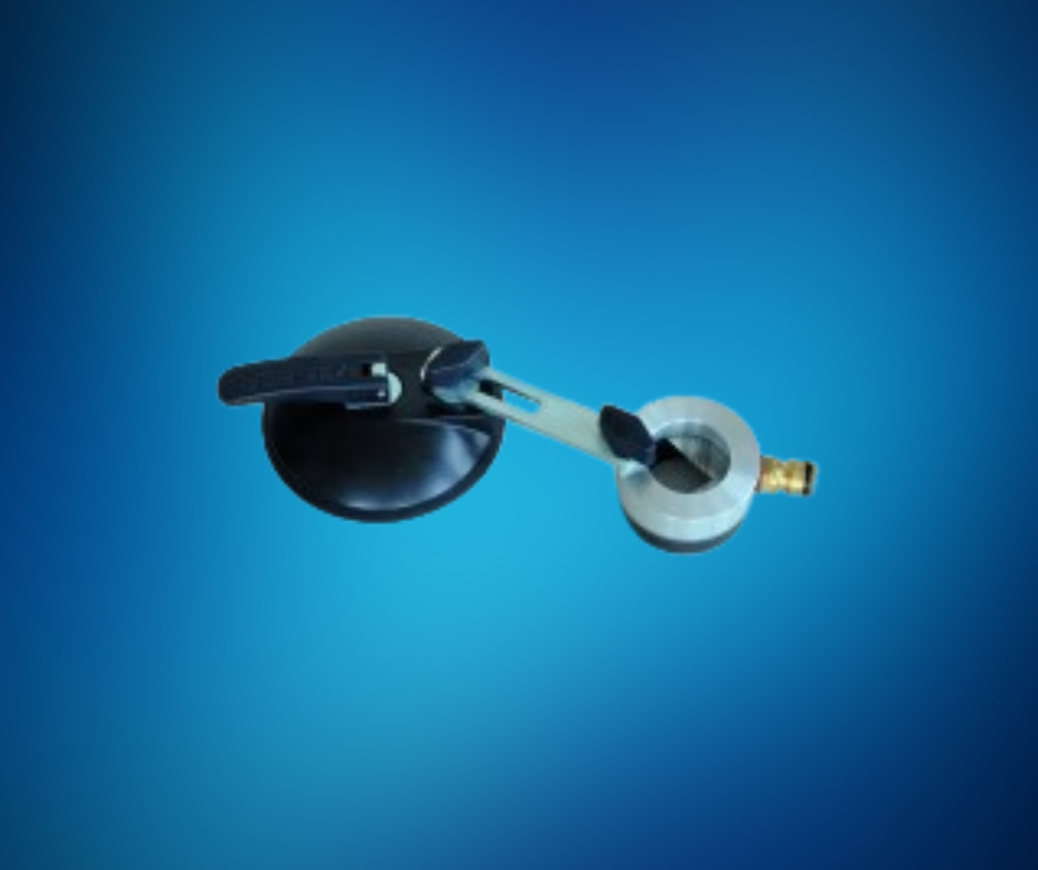 Anbohrhilfe mit Bohrschablone und Anschluss für Wasserabsaugung mit Vakuumfuß. Zur Feinjustierung für einen Bohrbereich von Durchmesser 4 – 14 mm.